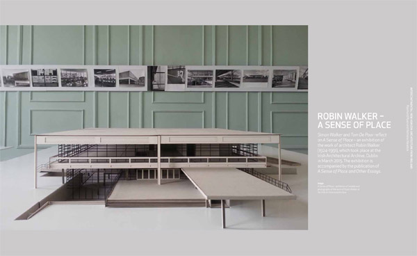 The suite of original photographs by John Donat of buildings by Robin Walker filled the horizon on the archipelago of model buildings, a gloss frieze on an ideal city waist height on the piano nobile of 45 Merrion Square. The astonishing output of 15 years floated all white scaled 1:50 as far as the eye can see. This evening, the Archive is a studio again –card models made, again and once again, perhaps, by another generation, posing between drawing and fact, rehearsals for construction, reconstructions, a paper architecture cut and paste on the section line, made very thin.